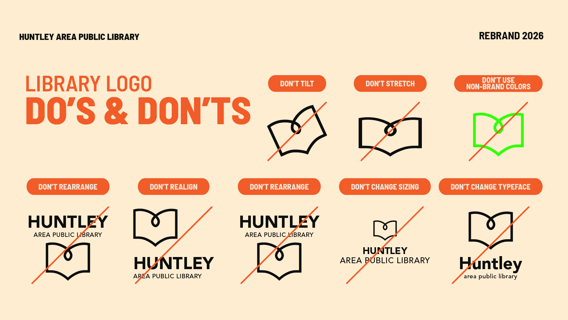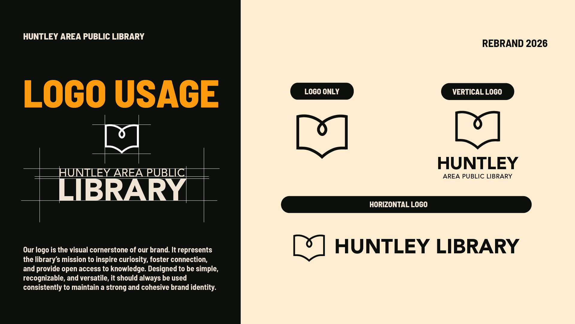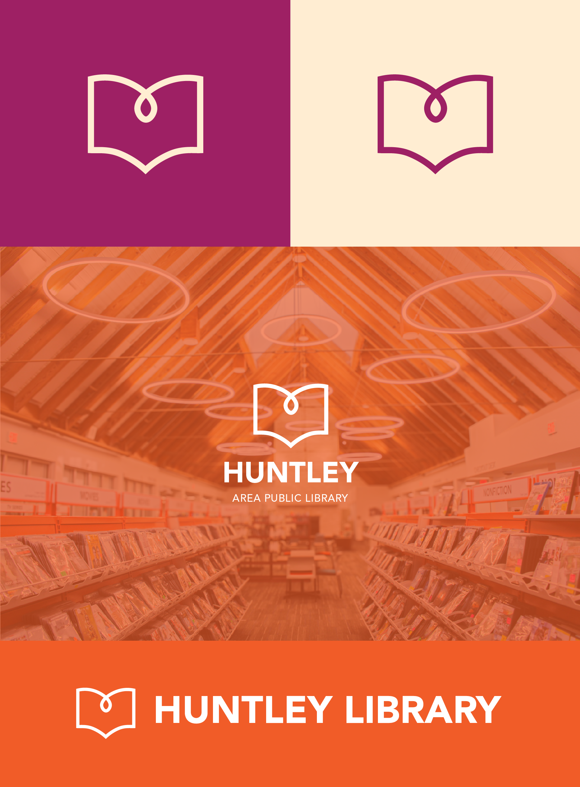 Led a full brand refresh for Huntley Area Public Library, updating colors, logos, and brand guidelines to unify the library’s visual identity. Created a cohesive system that allowed staff to produce signage, ads, and materials consistently, overcoming the limitations of the previous muted palette and scattered approach.
